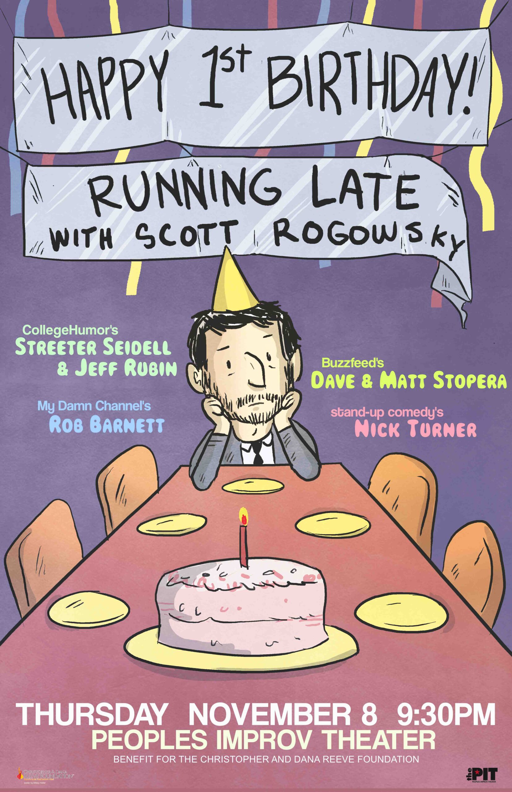 Official, limited-edition print of the November 8, 2012 show featuring STREETER SEIDELL & JEFF RUBIN (CollegeHumor), DAVE & MATT STOPERA (BuzzFeed), ROB BARNETT (My Damn Channel), NICK TURNER (Late Night with Jimmy Fallon). Poster by Mikey Heller. Hand-numbered out of 20!