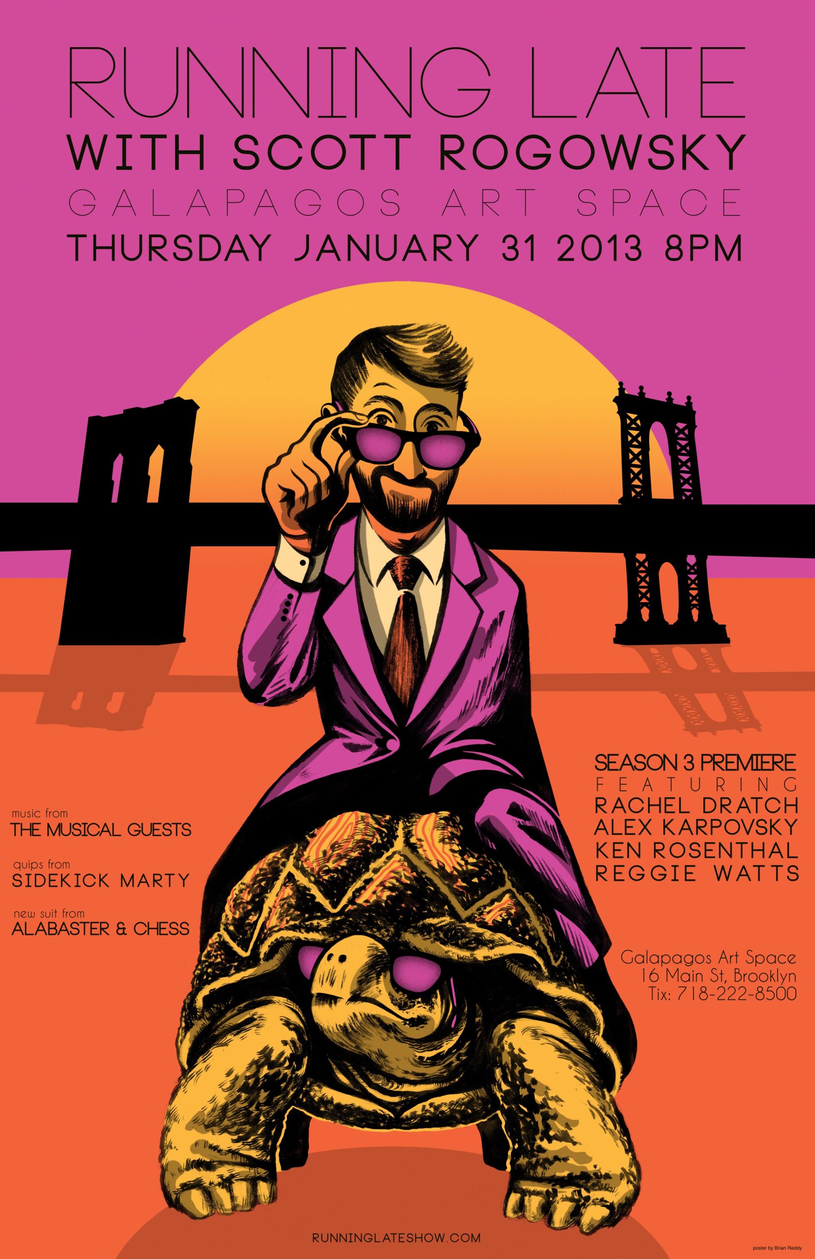 Official, limited-edition print of the Season 3 Premiere show featuring RACHEL DRATCH, REGGIE WATTS, ALEX KARPOVSKY, KEN ROSENTHAL. Poster designed by Brian Reddy. Hand-numbered out of 20!